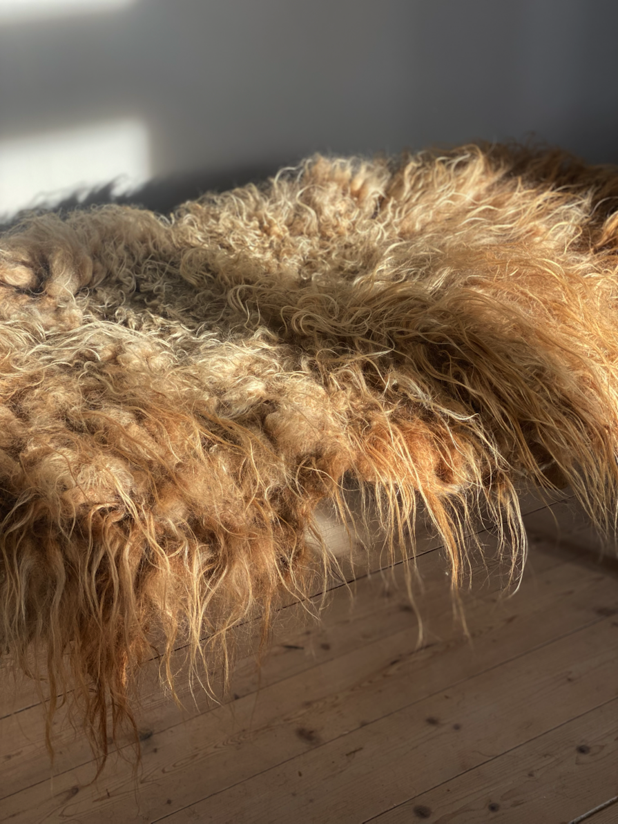 Eigentlich muss man das Fell vor sich haben, um die Farbe sehen und die Wolle fühlen können, ein Foto kann die Haptik und den Farbton nur ansatzweise wiedergeben.