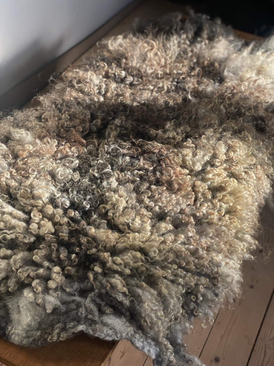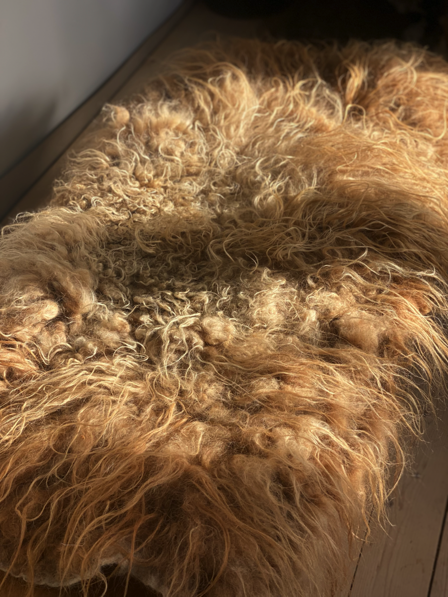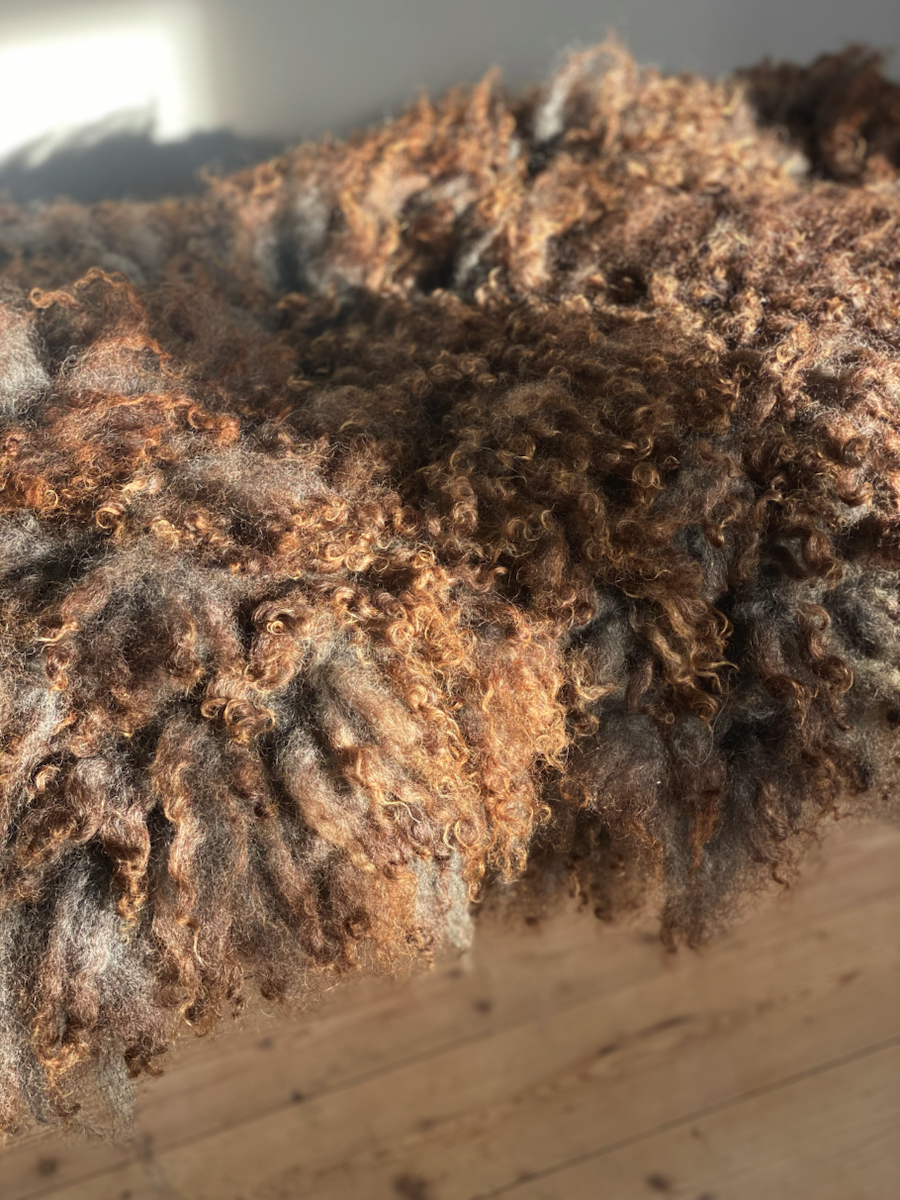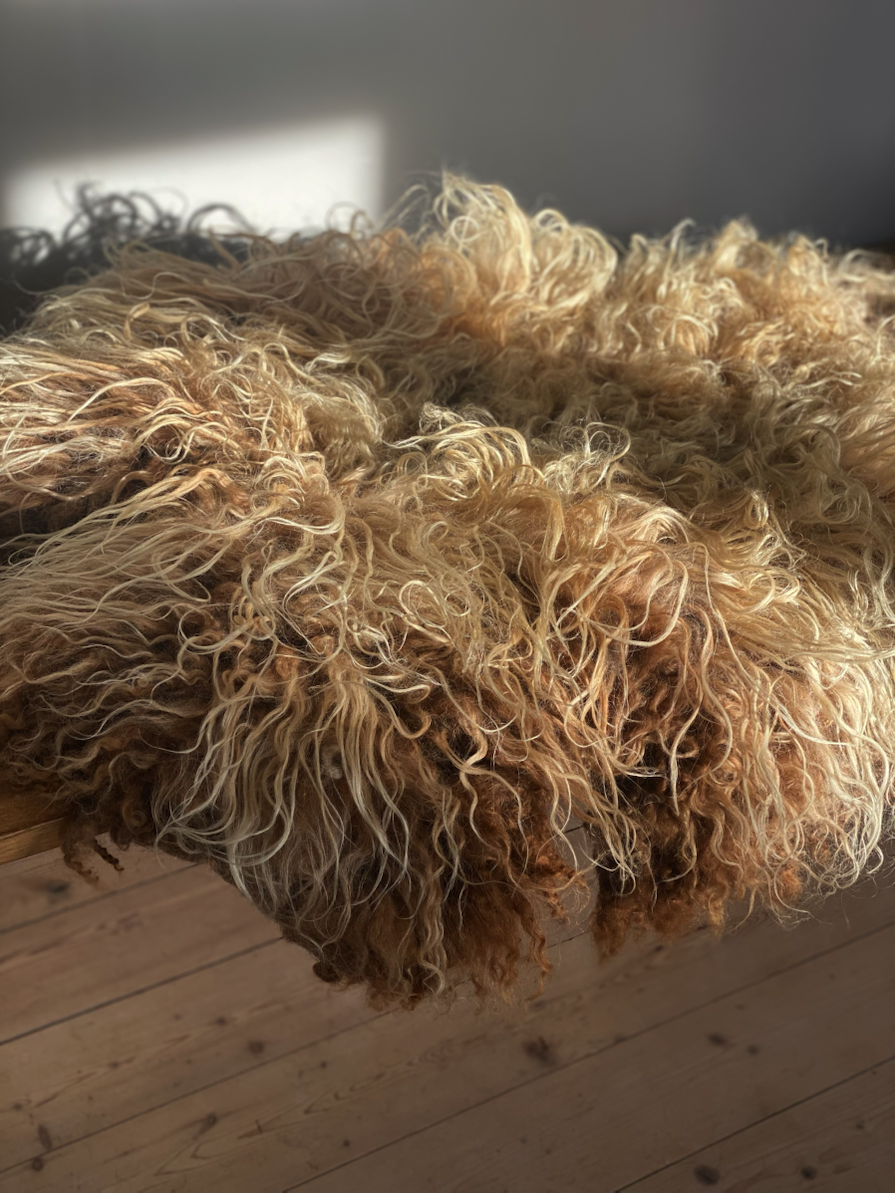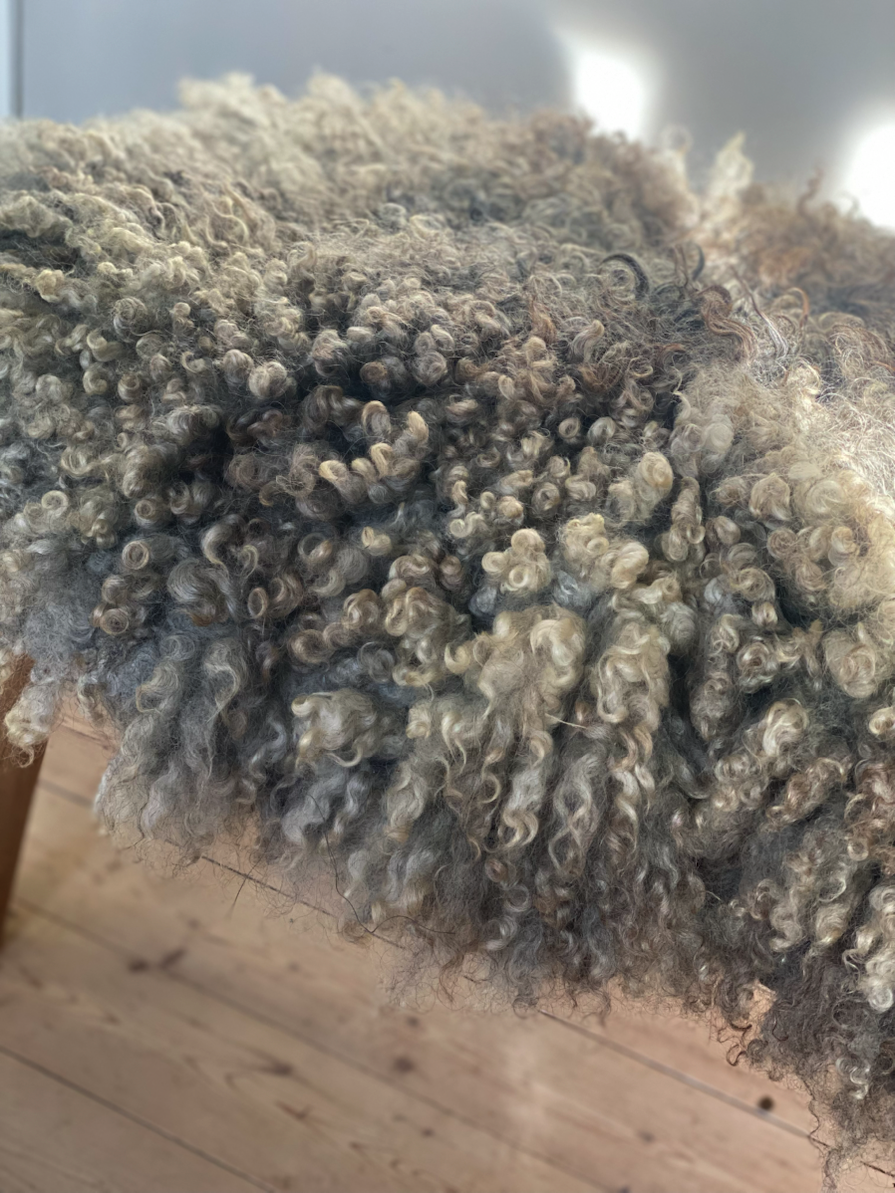 Eigentlich muss man das Fell vor sich haben, um die Farbe sehen und die Wolle fühlen können, ein Foto kann die Haptik und den Farbton nur ansatzweise wiedergeben.